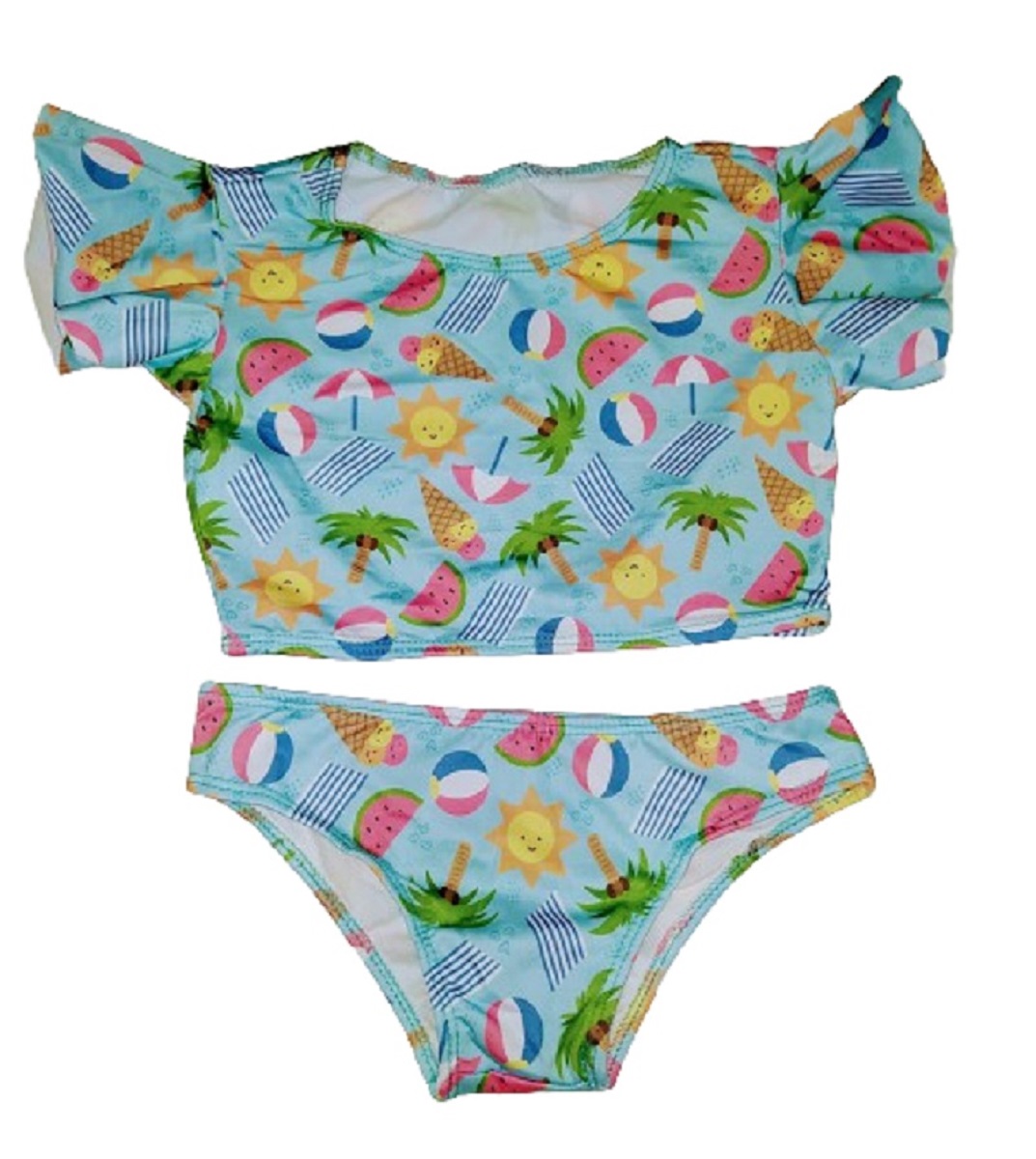Composto por calcinha e top de mangas com babado.