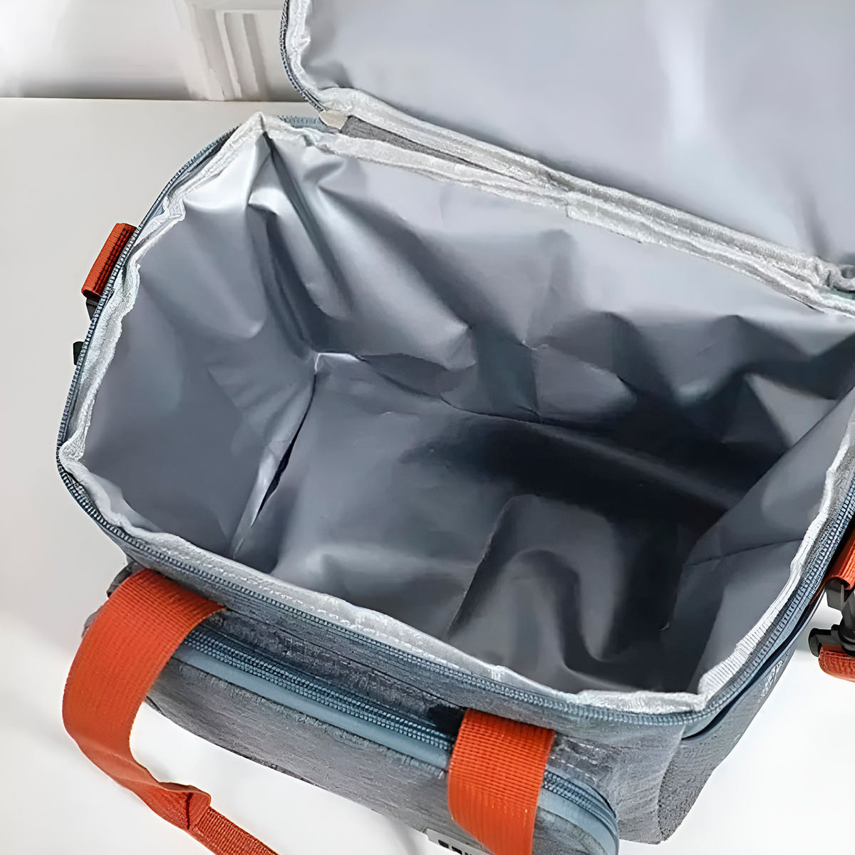 Essa Bolsa Térmica foi desenhada para quem busca praticidade sem abrir mão da elegância. Com tecnologia de isolamento térmico de alta performance, ela mantém suas refeições na temperatura ideal por muito mais tempo. – Asolução definitiva para organizar sua rotina alimentar de forma saudável e econômica. -Camada interna em folha de alumínio de alta qualidade que preserva o frescor dos alimentos por horas. -Formato compacto que cabe tudo o que você precisa, mas com um visual que combina com qualquer ambiente profissional ou acadêmico. Especificações Técnicas: – Material: Poliéster – Dimensões Aprox.: 28cm (ALTURA) x 26cm (LARGURA) x 19cm (PROFUNDIDADE) – Volume: 12L – Cabe até 6 latas – Conservação: 4h (QUENTE) / 6h (GELADO) – Com alça de mão Itens Inclusos: – 01x Marmita