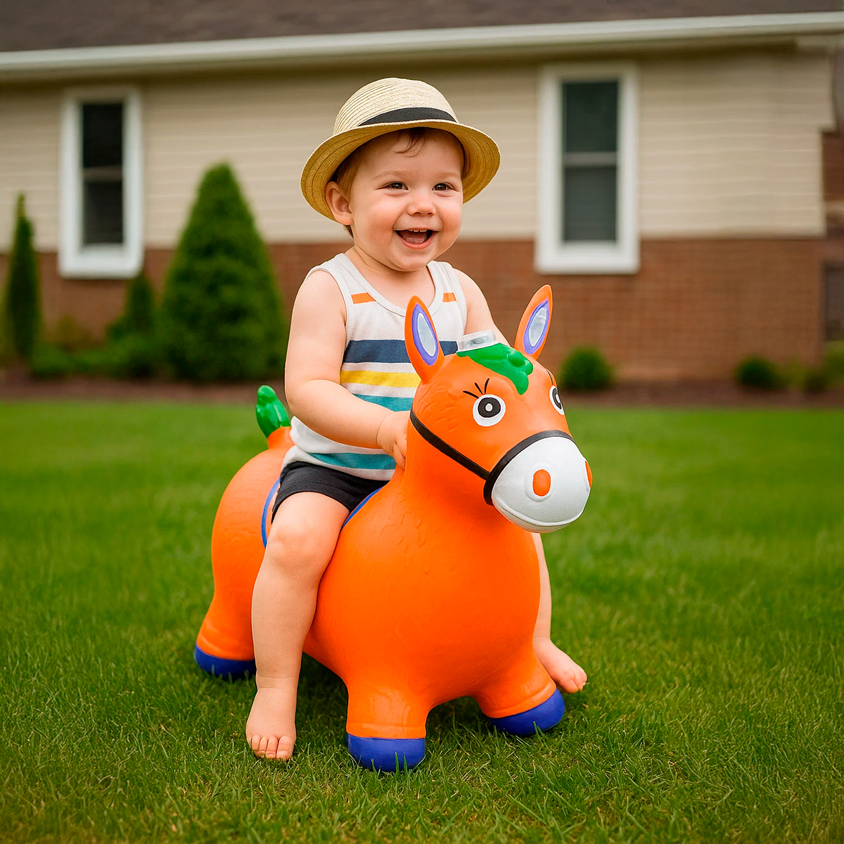Transforme a energia da criançada em pulos de alegria e muita diversão! O brinquedo clássico que garante risadas, estimula o desenvolvimento e proporciona horas inesquecíveis de pura aventura para os pequenos. -Ajuda na coordenação motora e desenvolvimento físico da criança. -Mais que um brinquedo, é um amigo que vai acompanhar seu filho em cada salto e descoberta! – Perfeito para canalizar a energia das crianças de forma positiva e saudável. -Fortalece pernas e braços, e aprimora o equilíbrio. -Uma forma divertida e empolgante de se manter ativo, tanto em ambientes internos quanto externos. Especificações Técnicas: – Material: Vinil – Peso Suportado: Até 50kg – Idade Mínima Recomendada: +3 anos – Dimensões Aprox.: 50cm (ALTURA) x 60cm (COMPRIMENTO) – Com luz e som – Fonte de Alimentação do LED: 3 pilhas LR44 (NÃO INCLUSAS) Itens Inclusos: – 01x Cavalinho Inflável