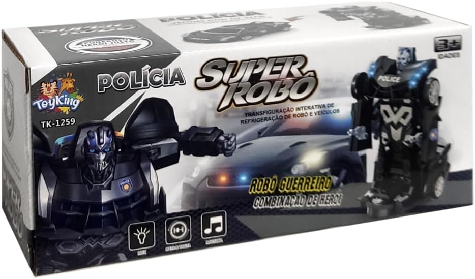 Este carro dá um show sozinho, ele é um carro autônomo e quando encontra um obstáculo desvia, vai para outra direção, ele se transforma em um Super Robô que emite sons de polícia e fala frases. As crianças vão amar esse carrinho.