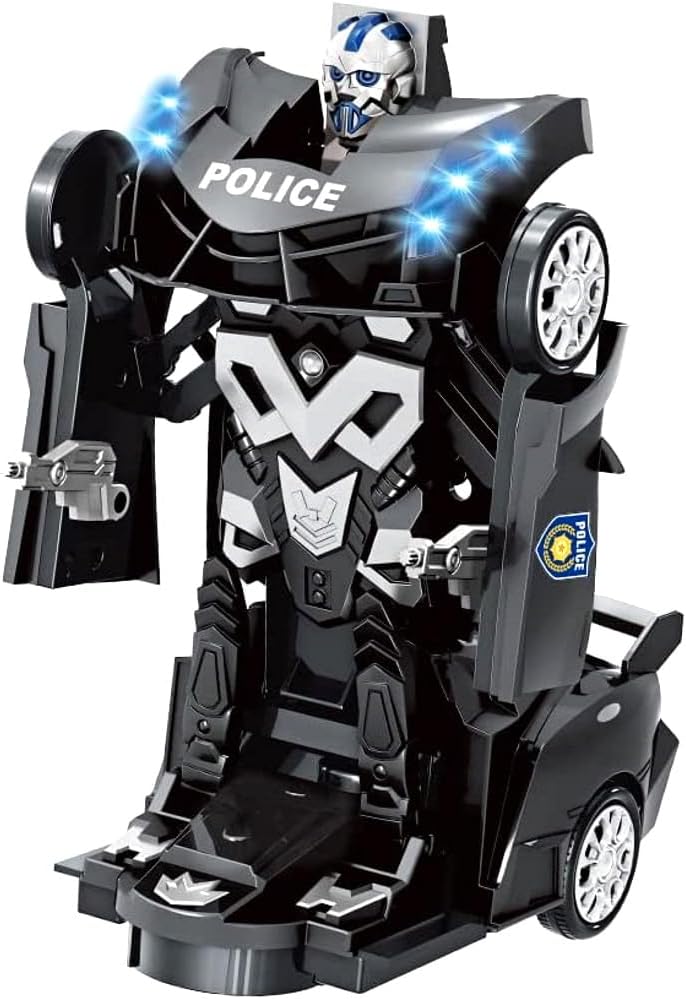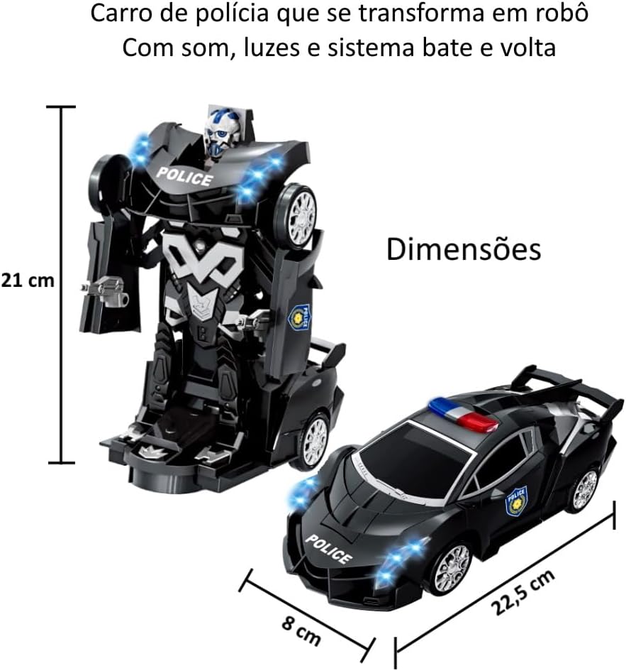 Carro de Polícia que se Transforma Robô com Luzes e Som