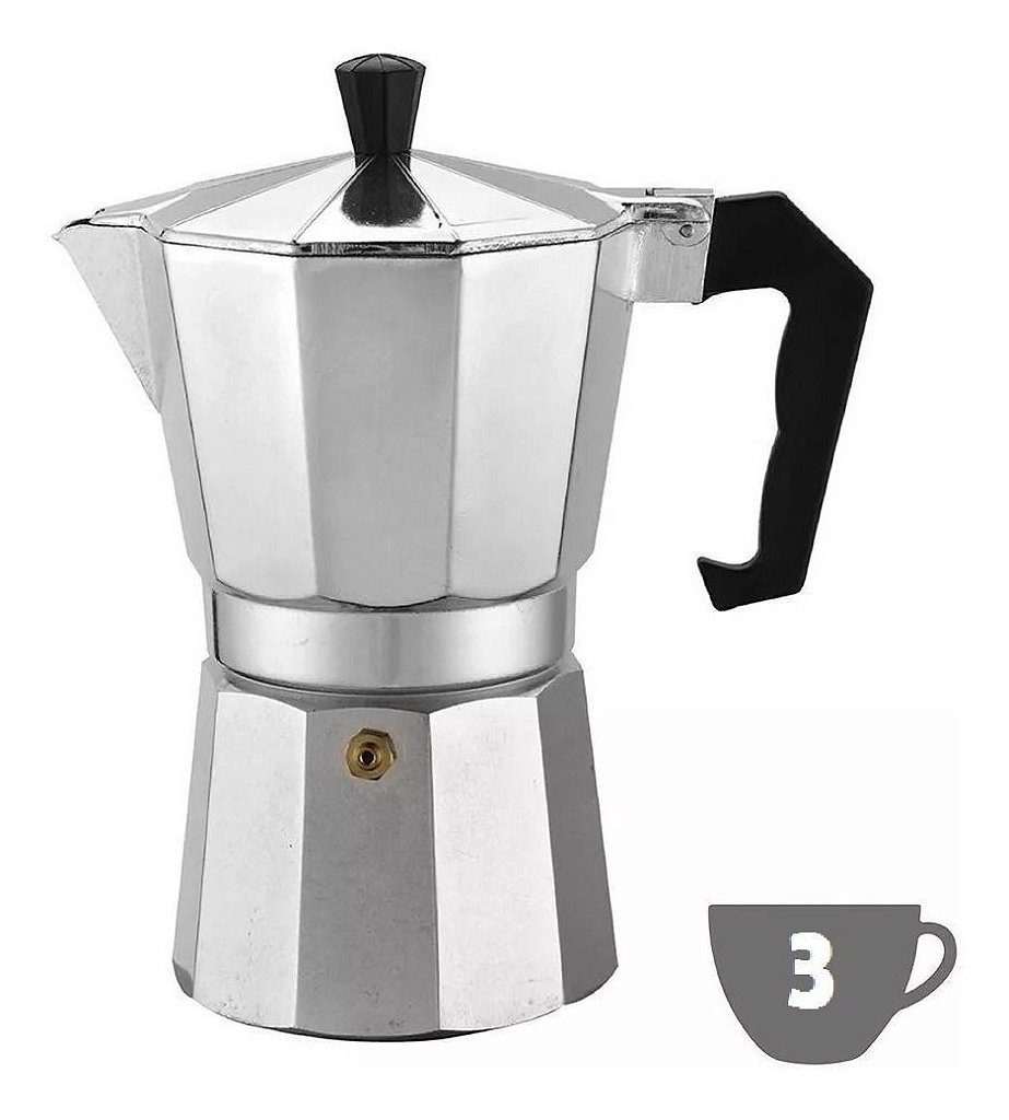 Cafeteira Italiana Em Alumínio Para 3 Xícaras Especificações/Características do produto: – Alumínio Polido De Excelente Qualidade – Válvula De Proteção – Completamente Desmontável Para Limpeza – Produto Altamente Resistente E Durável – Cor: Prata – Capacidade: 150 ml