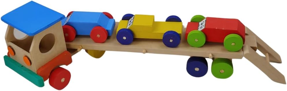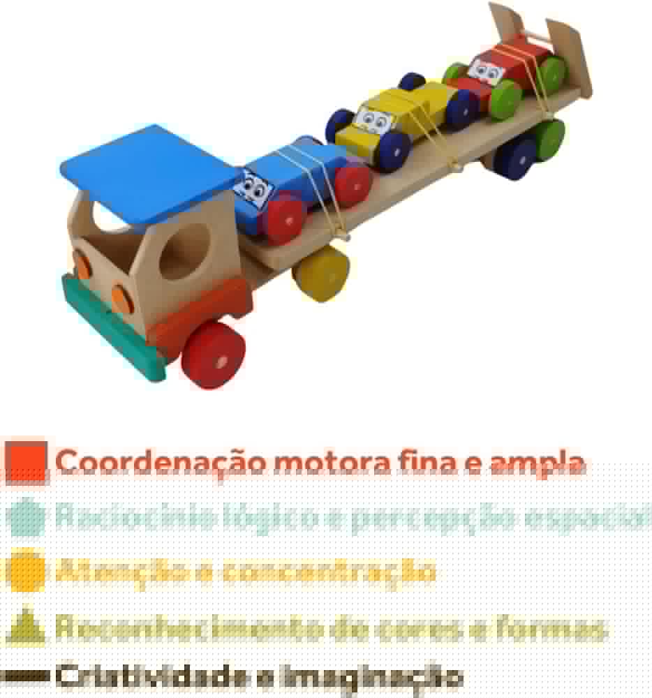 Caminhão Cegonha em Madeira com 3 Carrinhos O Caminhão Cegonha é um brinquedo educativo e divertido que encanta crianças e estimula o aprendizado por meio da brincadeira. Produzido artesanalmente em madeira e pintado com tinta atóxica, ele possui cores vibrantes e acompanha 3 carrinhos de madeira que podem ser colocados e retirados da carreta, incentivando a coordenação motora e a criatividade. Ideal para crianças a partir de 3 anos, o brinquedo trabalha a atenção, a concentração e o raciocínio lógico, além de desenvolver noções de movimento e percepção visual. É perfeito para brincadeiras em casa, escolas e brinquedotecas, unindo aprendizado e diversão de forma segura e educativa. Contém: 1 caminhão cegonha de madeira 3 carrinhos de madeira coloridos Material: Madeira artesanal com pintura atóxica Cores: Colorido sortido (podem variar por ser produto artesanal) Idade recomendada: A partir de 3 anos Certificação: CE-BRINQ/SARON-00662-21 Medidas aproximadas: Comprimento: 49 cm Largura: 13 cm Altura: 13,5 cm Peso: 1.270 g Benefícios pedagógicos: Coordenação motora fina e ampla – Estimula o controle dos movimentos ao empilhar e encaixar os carrinhos. Raciocínio lógico e percepção espacial – Incentiva o entendimento de sequência, posição e equilíbrio. Atenção e concentração – Favorece o foco durante a montagem e a movimentação da cegonha. Reconhecimento de cores e formas – Desenvolve habilidades cognitivas e visuais. Criatividade e imaginação – Promove brincadeiras simbólicas e histórias com os carrinhos. PRODUTO ARTESANAL – SUJEITO A VARIAÇÕES DE CORES E FORMAS.