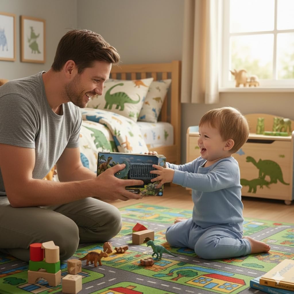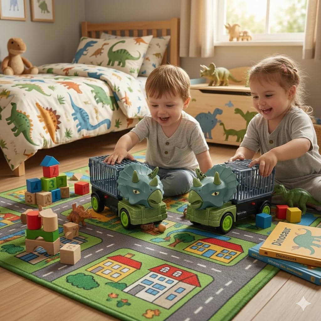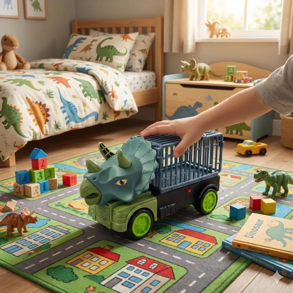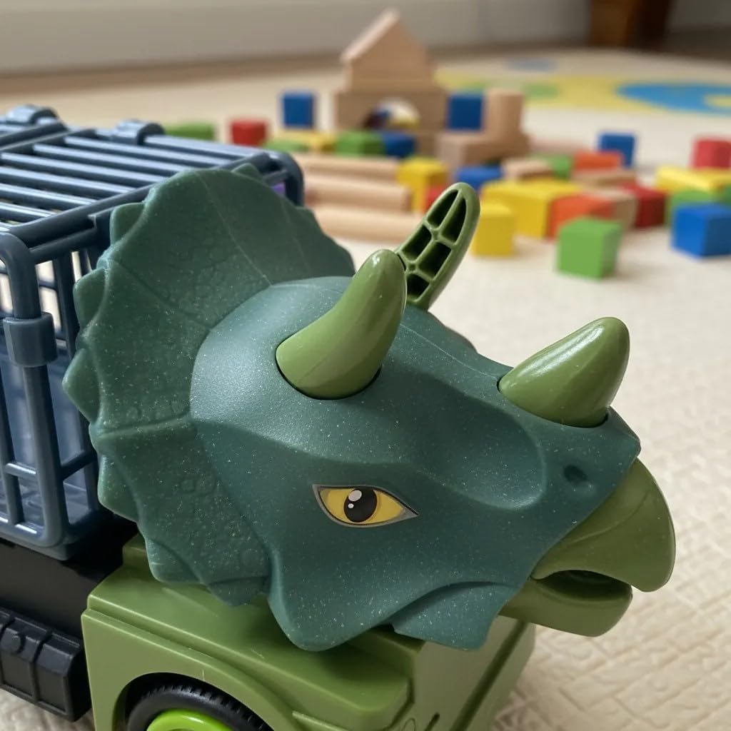 AVENTURA JURÁSSICA EM CASA: Transforme o quarto do seu filho em um verdadeiro parque dos dinossauros com este caminhão temático de Triceratops. Design realista e cores vibrantes que estimulam a imaginação.