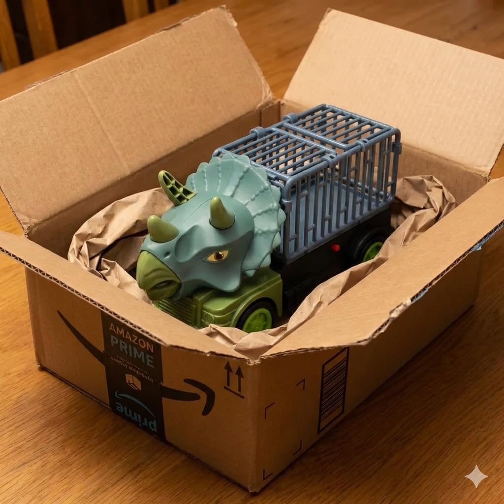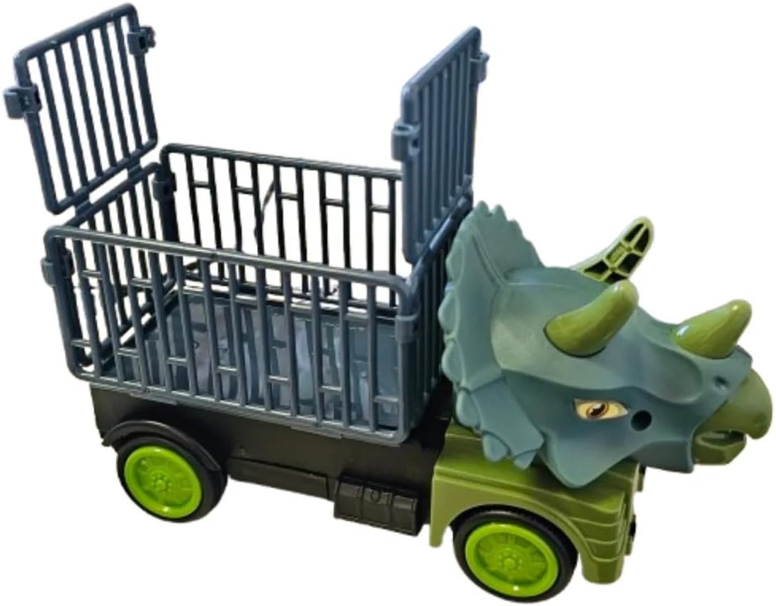 Caminhão Bate e Volta Dino com Gaiola com LUZ com Movimento e Som de Dinossauros. Possui uma caçamba na parte traseira, que abre como se fosse gaiola. Utiliza 3x pilhas AA (não inclusas). Leve a Pré-História para a Estrada com o Caminhão Triceratops! Você está procurando um presente que tire seu filho do celular e desperte a curiosidade? O Caminhão de Transporte Triceratops é mais do que um simples carrinho; é uma ferramenta de aventura. Com um design exclusivo que une a força de um caminhão de carga com a majestade de um dos dinossauros mais famosos da história, este brinquedo é o favorito imediato de qualquer criança. Seja resgatando feras pré-históricas ou organizando uma frota de transporte, a jaula traseira permite que a criança interaja com outros brinquedos da sua coleção. É robusto, fácil de manusear e projetado para durar.
