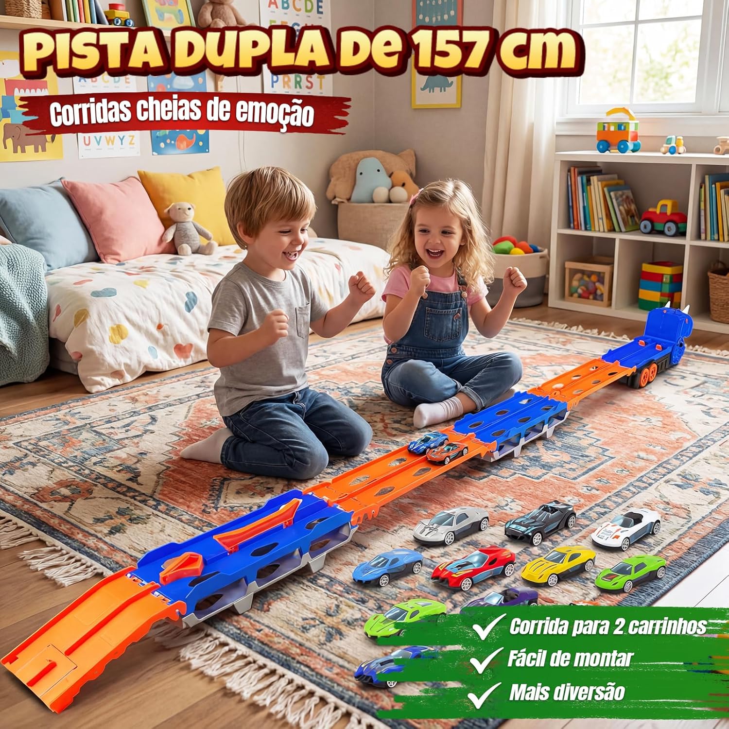 🚀 Pista Dupla de 157 cm com Abertura Rápida