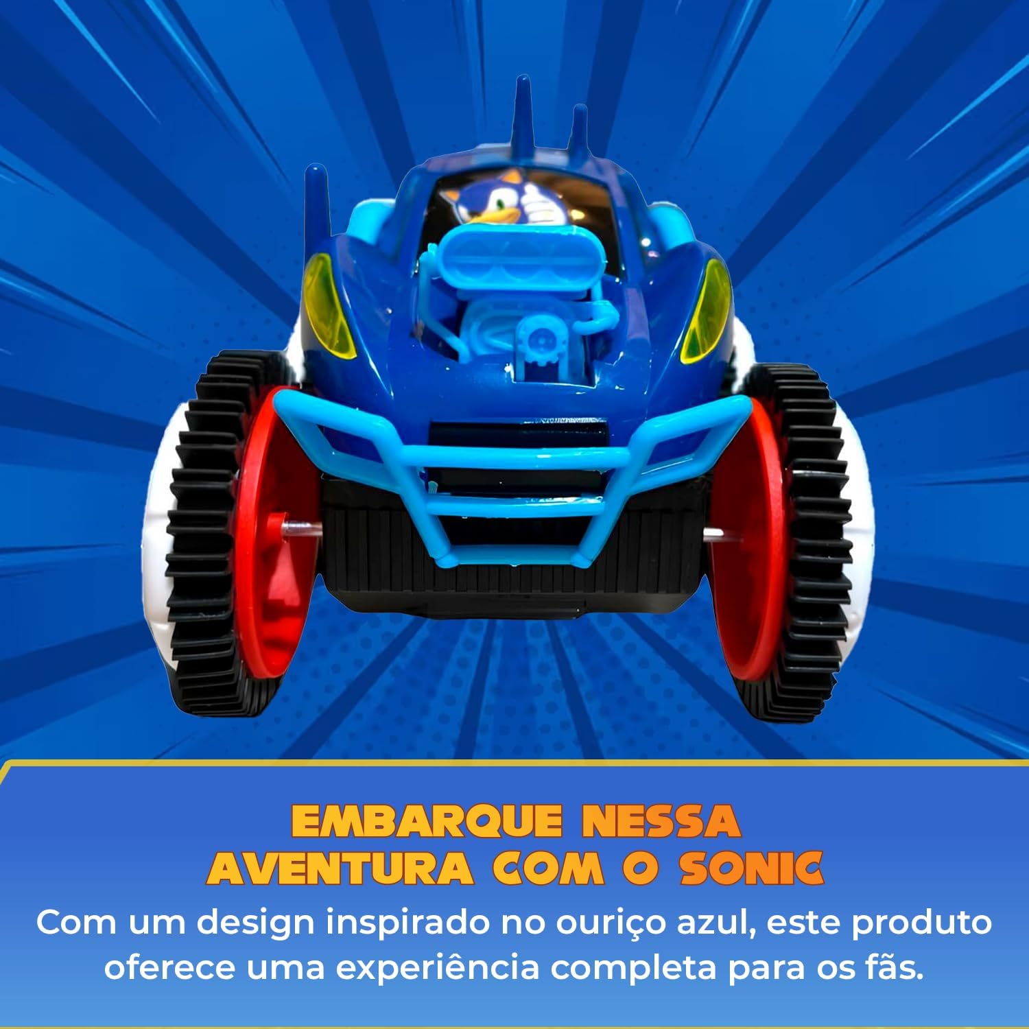 ACELERE COM O SONIC. O carrinho de controle remoto do Sonic possui detalhes realistas e criativos inspirados no ouriço azul mais famoso dos jogos de plataforma.