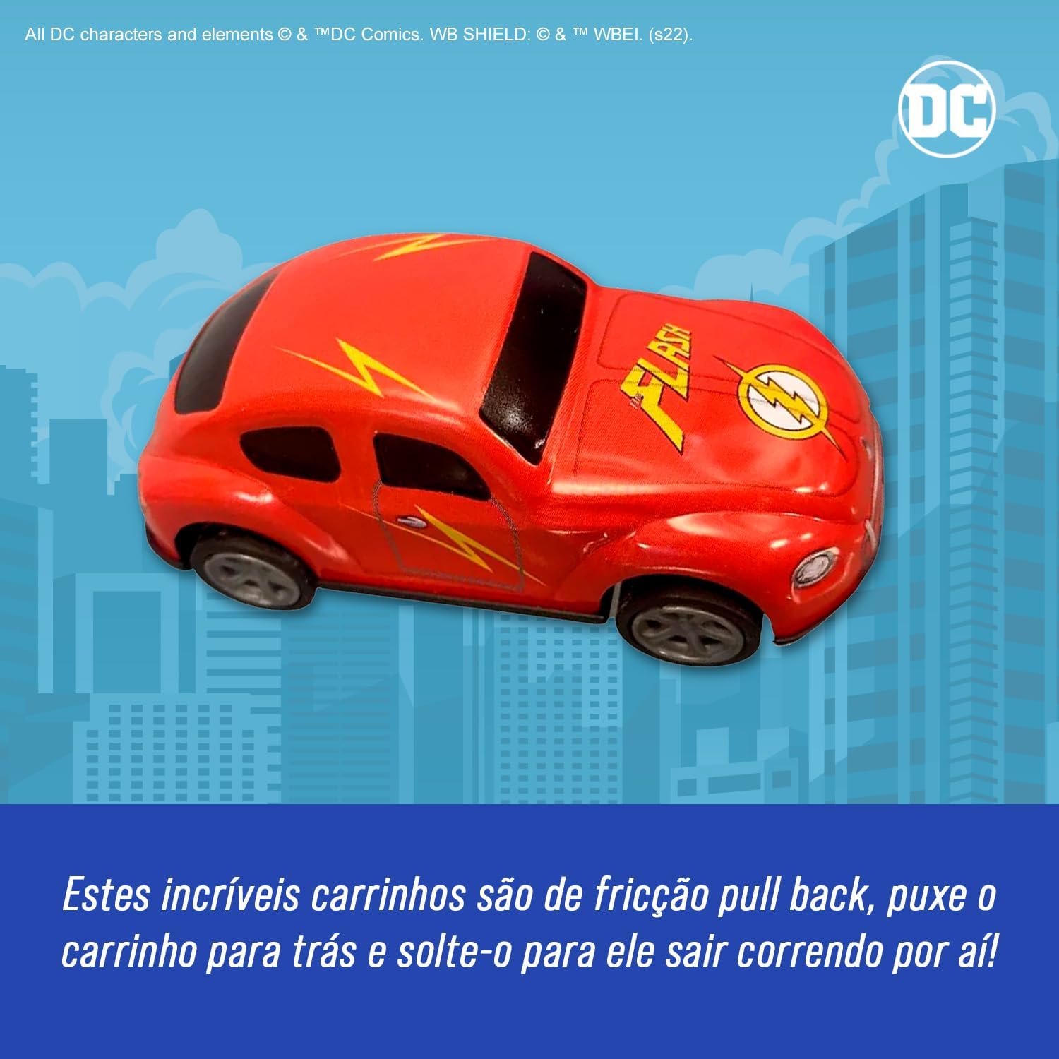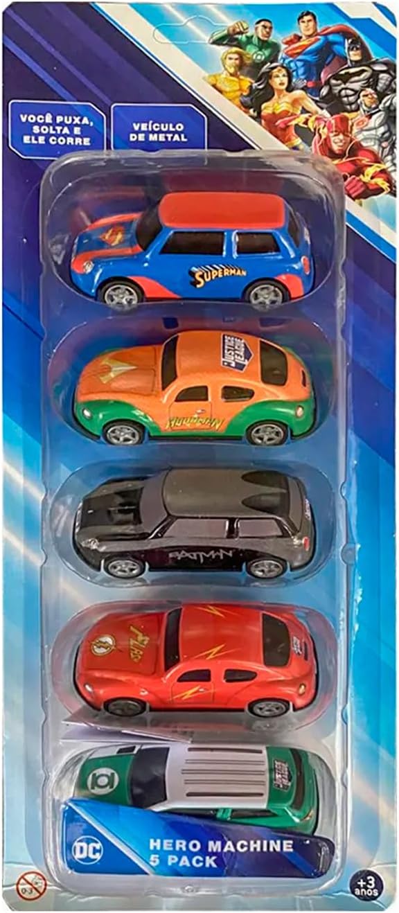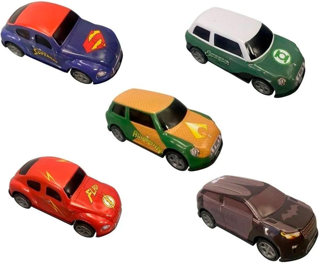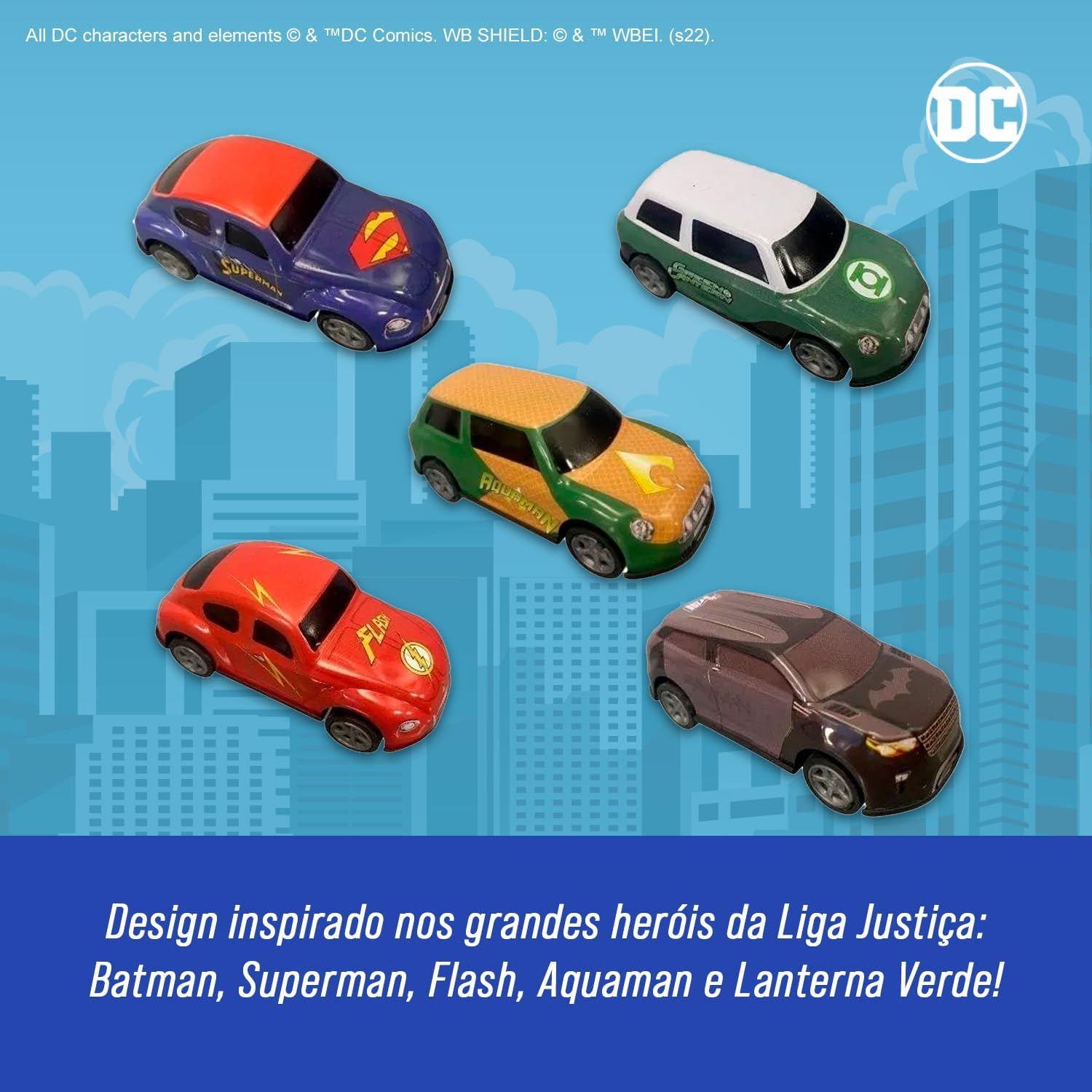 DIVERSÃO SOBRE RODAS. O kit de Mini Carrinhos Pull Back Liga da Justiça traz carrinhos inspirados nos grandes heróis da DC: Batman, Superman, Flash, Aquaman e Lanterna Verde.
