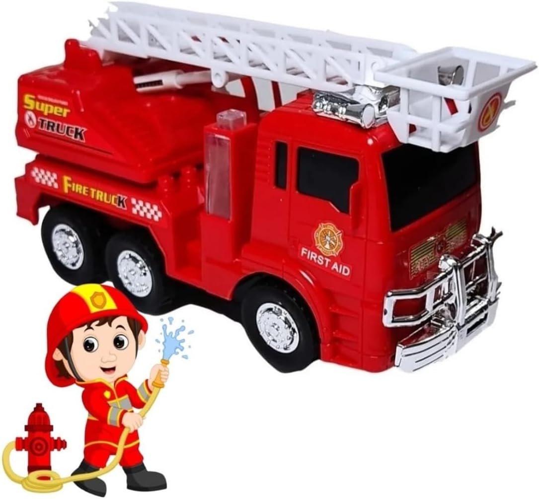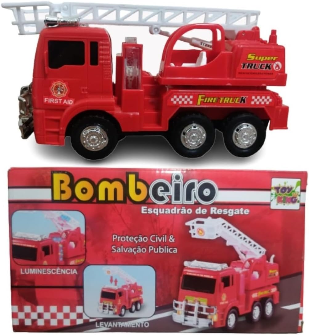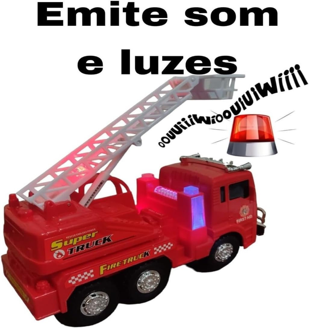 Carrinho Bate e Volta Caminhao Bombeiro Com Escada Som e Luz