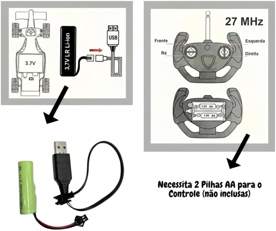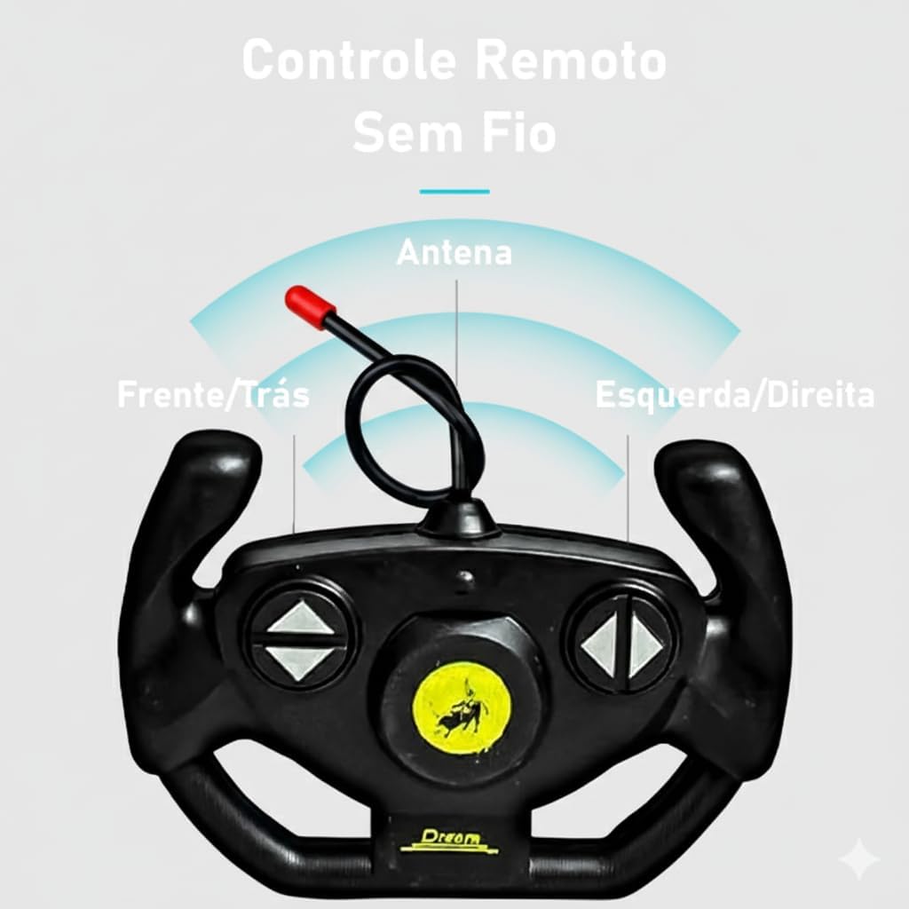 Controle Fácil de Usar – 4 funções: frente, ré, esquerda e direita, perfeito para crianças aprenderem rápido.
