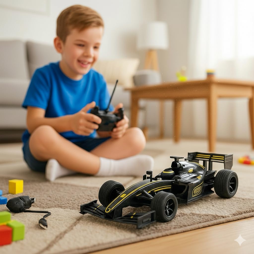 Diversão Garantida – Carrinho de corrida com design inspirado em Fórmula 1, ideal para crianças acima de 4 anos.
