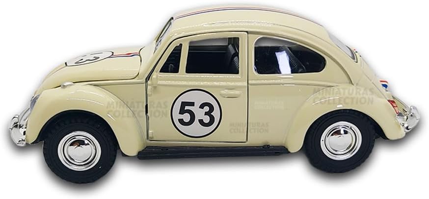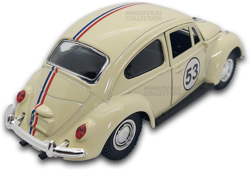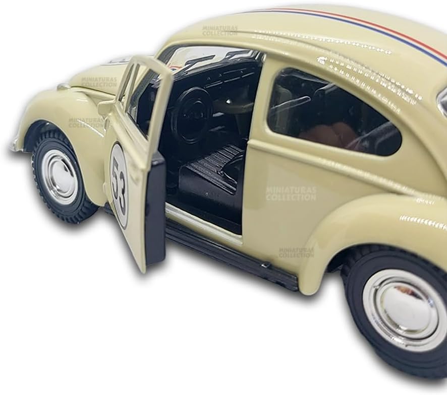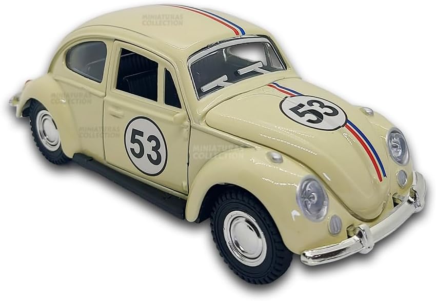 Miniatura Detalhada: Réplica autêntica do clássico Fusca 1953 em escala reduzida de 12 cm, confeccionada em ferro resistente com acabamento em cor bege elegante, perfeita para colecionadores e entusiastas de carros vintage