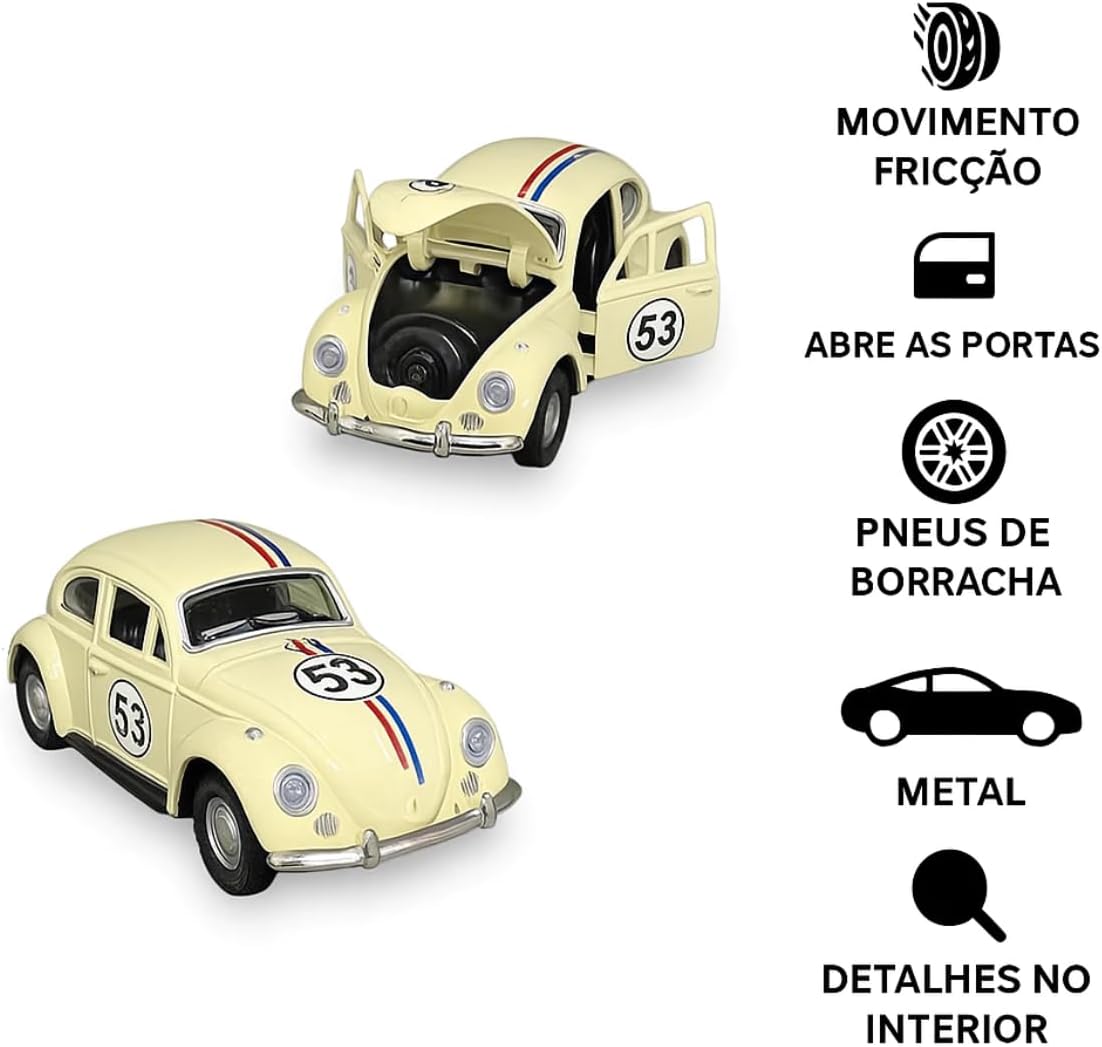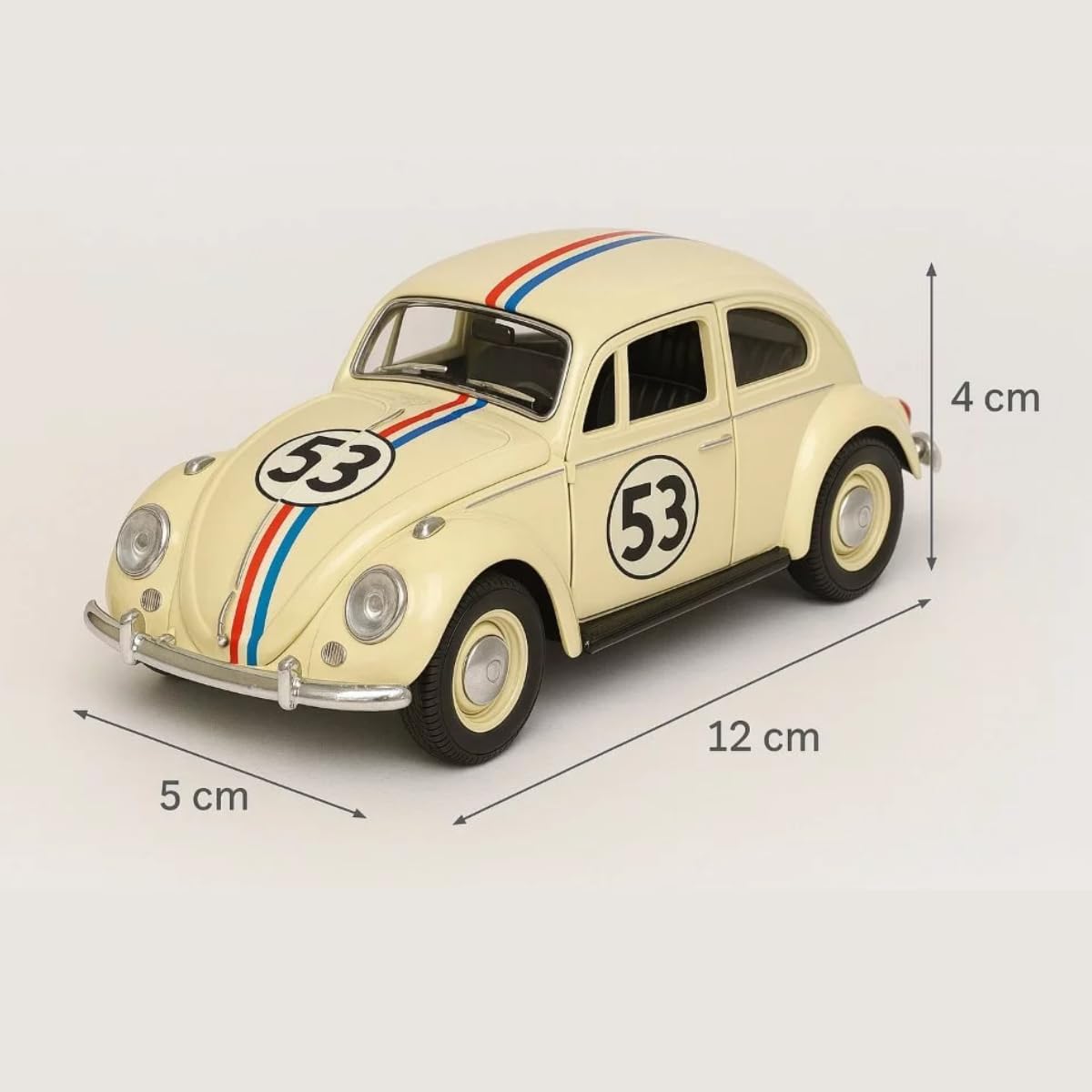 🚗 Modelo clássico Herbie 53 – Réplica detalhada do icônico Fusquinha Herbie, com pintura temática e design retrô fiel ao original.