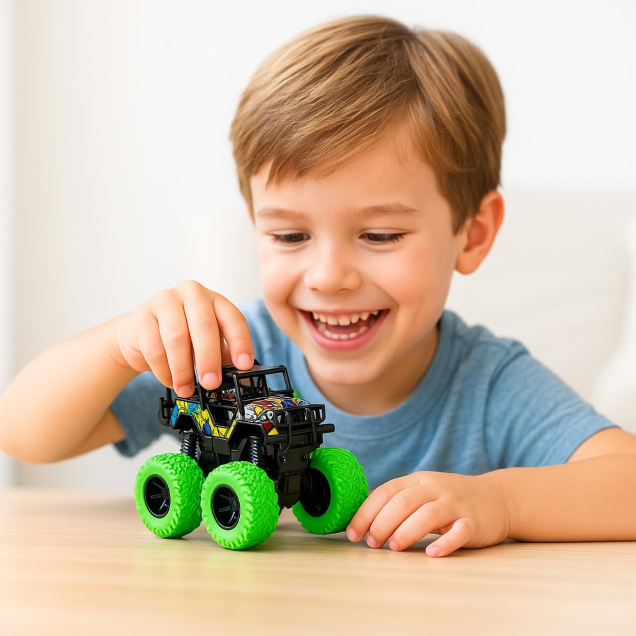 Apresentamos o incrível Carro Monstro Truck, um brinquedo espetacular que vai trazer muita diversão para as crianças! Com suas impressionantes rodas grandes e coloridas em verde , este veículo robusto é projetado para proporcionar horas de entretenimento. O carrinho conta com um sistema de fricção que permite que ele ganhe impulso e velocidade com facilidade, além de uma suspensão móvel que o ajuda a superar diversos obstáculos. Seu design moderno em preto com detalhes coloridos torna-o não apenas um brinquedo divertido, mas também uma peça decorativa quando não está em uso. Perfeito para colecionadores e pequenos aventureiros, este Carro Monstro Truck possui acabamento resistente e construção durável. Com seu tamanho ideal para mãos pequenas e detalhes realistas, incluindo uma cabine bem elaborada, este carrinho estimula a imaginação e proporciona momentos de pura alegria. Uma excelente opção de presente que certamente fará a felicidade de qualquer criança que adora veículos off-road e brincadeiras emocionantes.