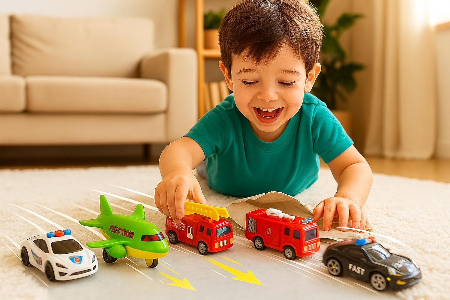 O Carrinhos Kit Aeroporto é perfeito para crianças que adoram ação e aventura! Com 4 carrinhos e 2 aviões de fricção, o brinquedo estimula a imaginação, coordenação e criatividade — transformando qualquer lugar em uma pista de pouso cheia de emoção.