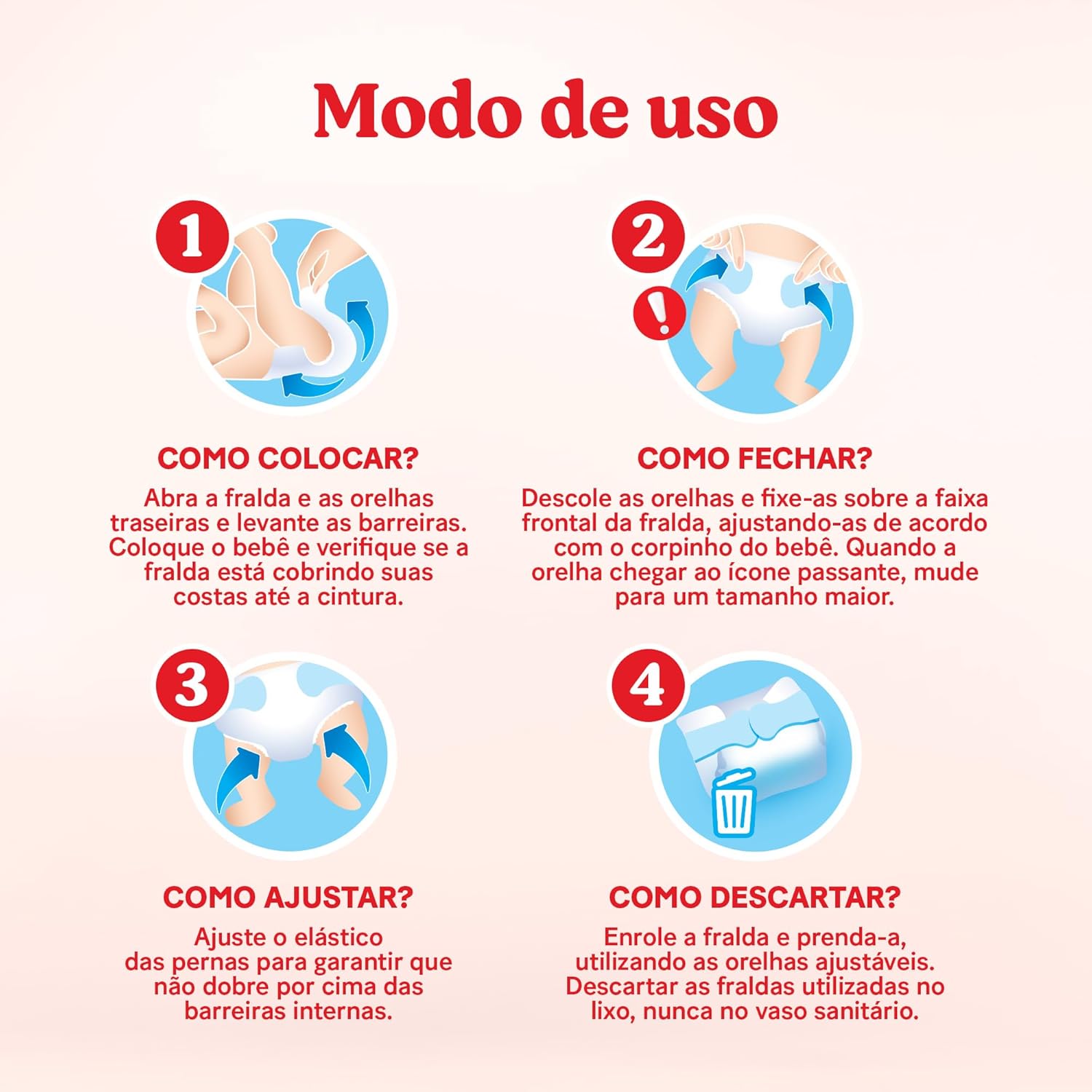 Mais flexibilidade- Canais em forma de x que mantêm a fralda flexível, mesmo quando está cheia, para que seu bebê se mova livremente
