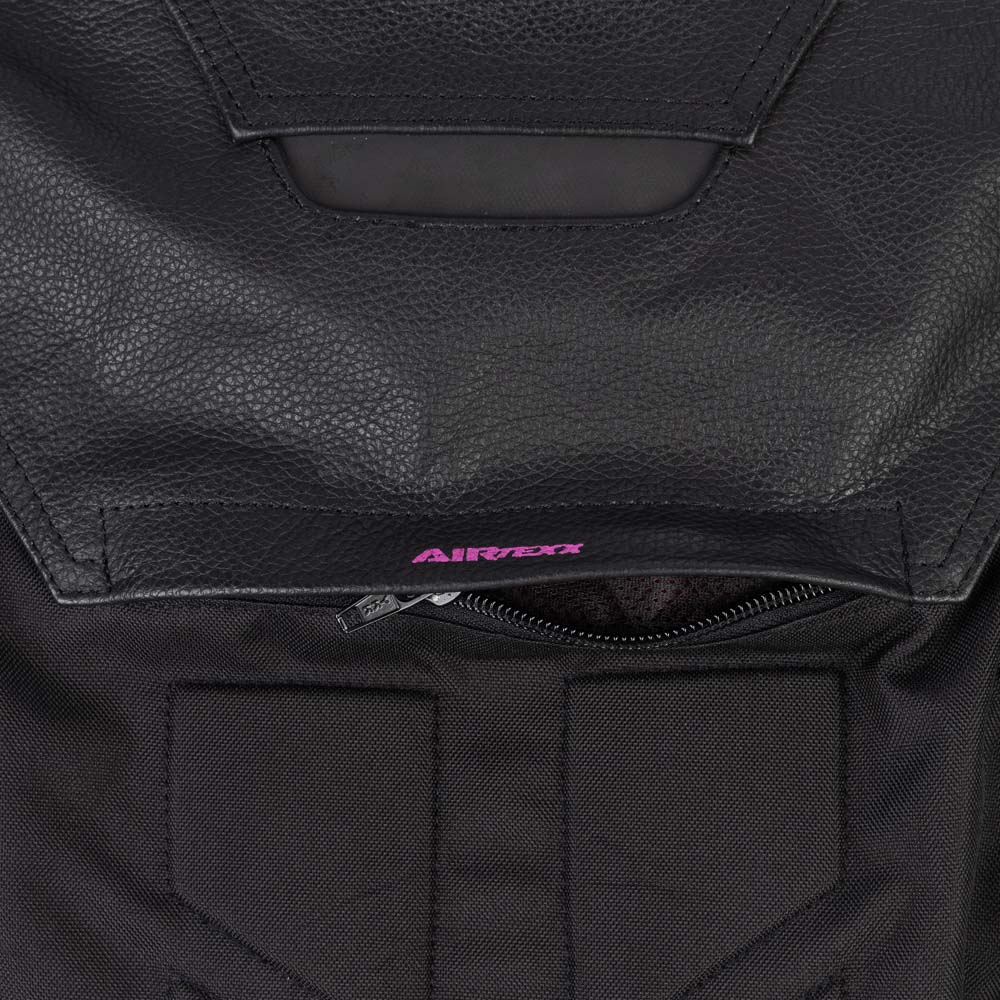 Construída em couro premium legítimo e tecido poliéster 600D de alta resistência a abrasão;