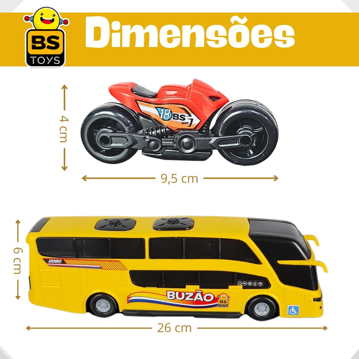 – Ónibus: 26×6 cm