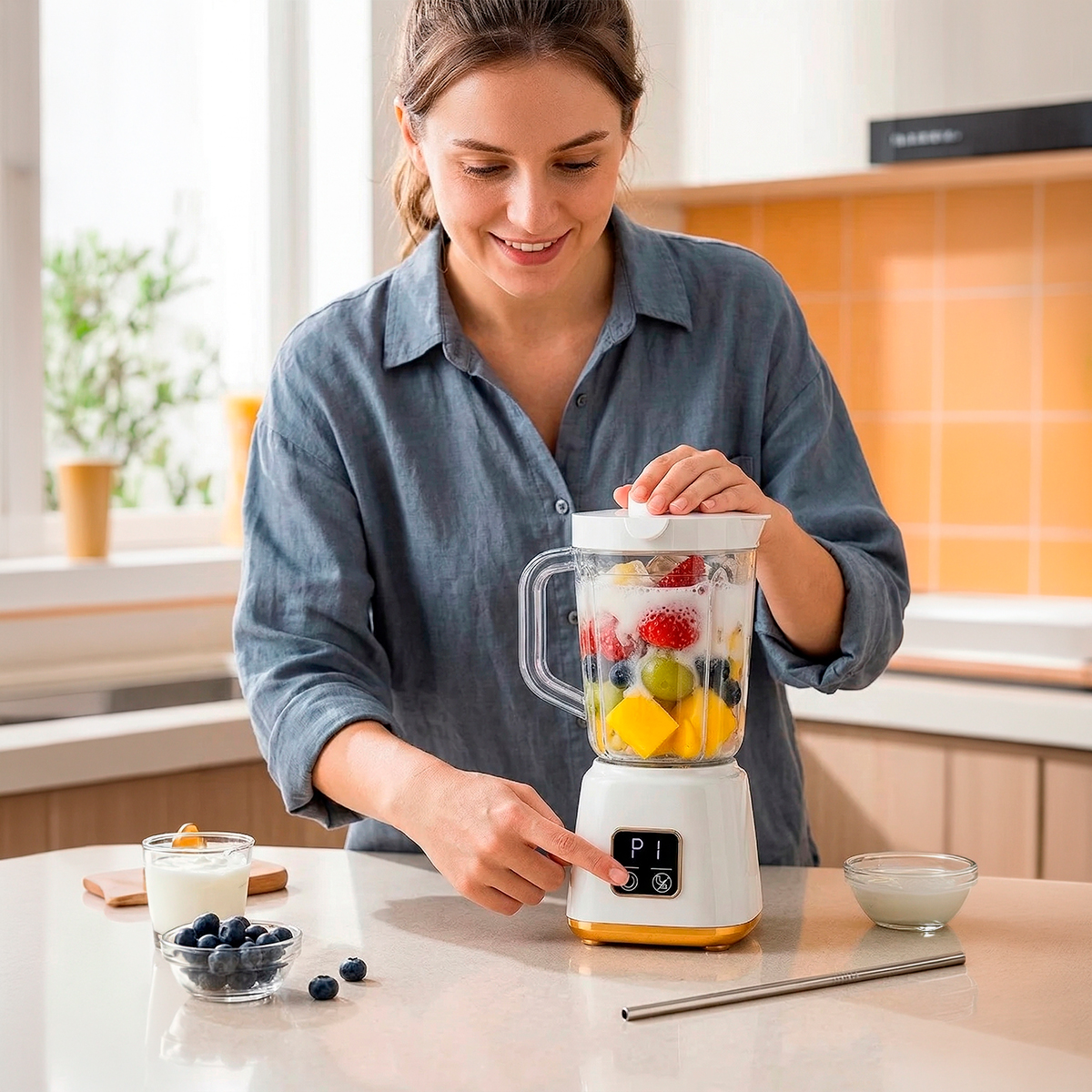 Seja na academia, no escritório ou em uma viagem, a praticidade agora cabe na sua bolsa! Esse Mini Liquidificador Portátil, você prepara sucos, shakes proteicos, vitaminas e papinhas de bebê em segundos, onde quer que esteja. -Design compacto e leve, ideal para levar na mochila ou na mala de treino. -Fácil de limpar. -Equipado com lâminas de aço inoxidável de alta performance que trituram frutas e gelo com facilidade. Especificações Técnicas: – Material: ABS/Componentes elétricos/Aço inox – Dimensões Aprox.: 23,5cm (ALTURA) x 9,5cm (LARGURA) – Capacidade: 650ml – Bateria: 1500mAh – Potência: 50W – Tensão: DC 7.4V ‡ 0,25V – 3 velocidades – Velocidade: 21.000rpm Itens Inclusos: – 01x Mini liquidificador – 01x Cabo USB – 01x Manual