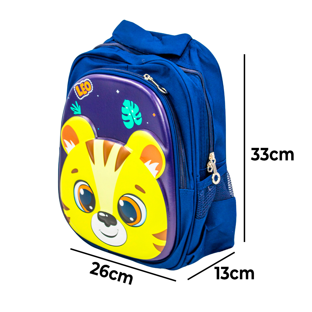 Mochila Escolar Infantil Bichinhos Modelo Tigre Azul