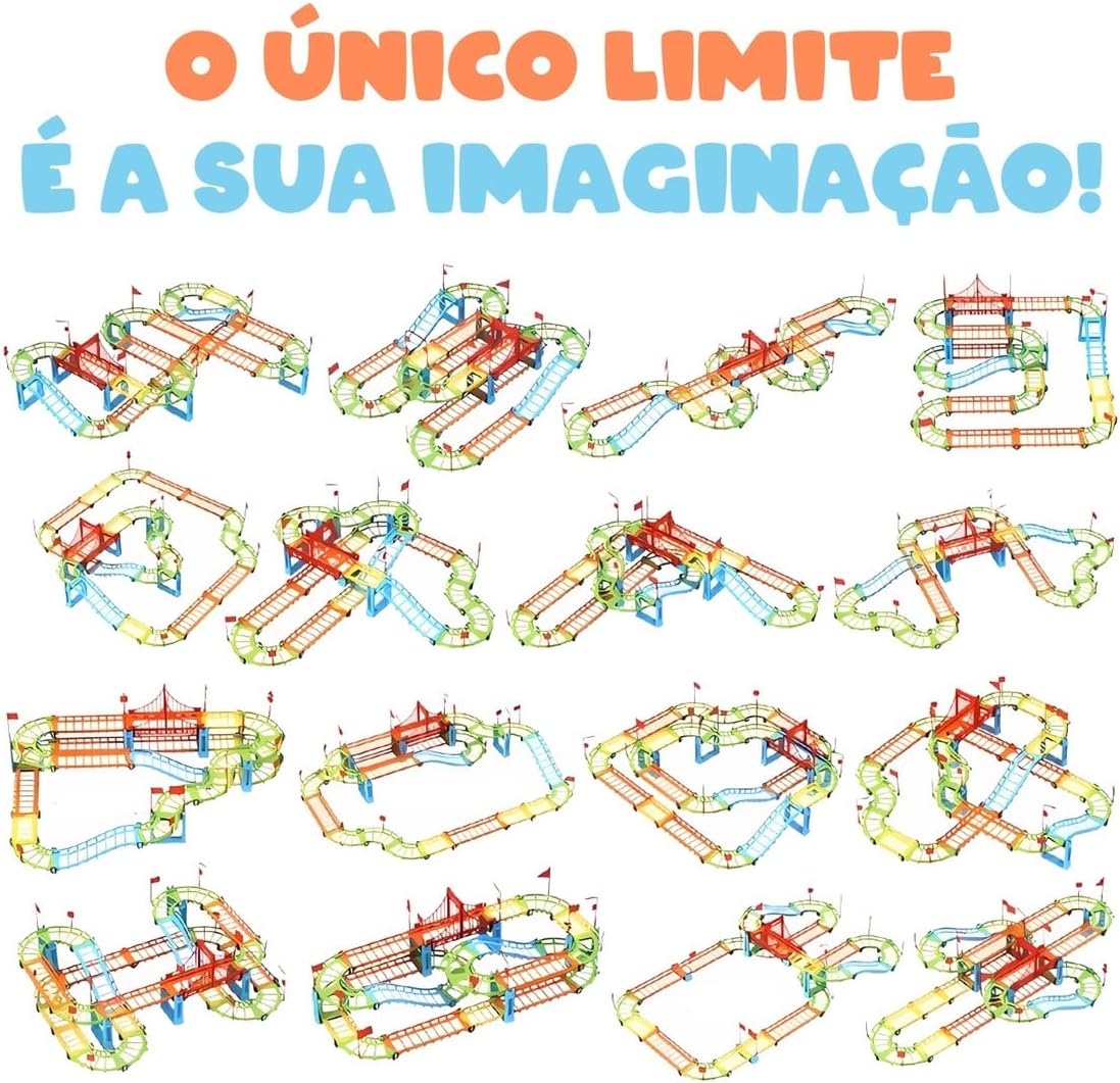 FÁCIL MONTAGEM: Peças modulares que se encaixam facilmente, permitindo diferentes configurações de pista para estimular a criatividade
