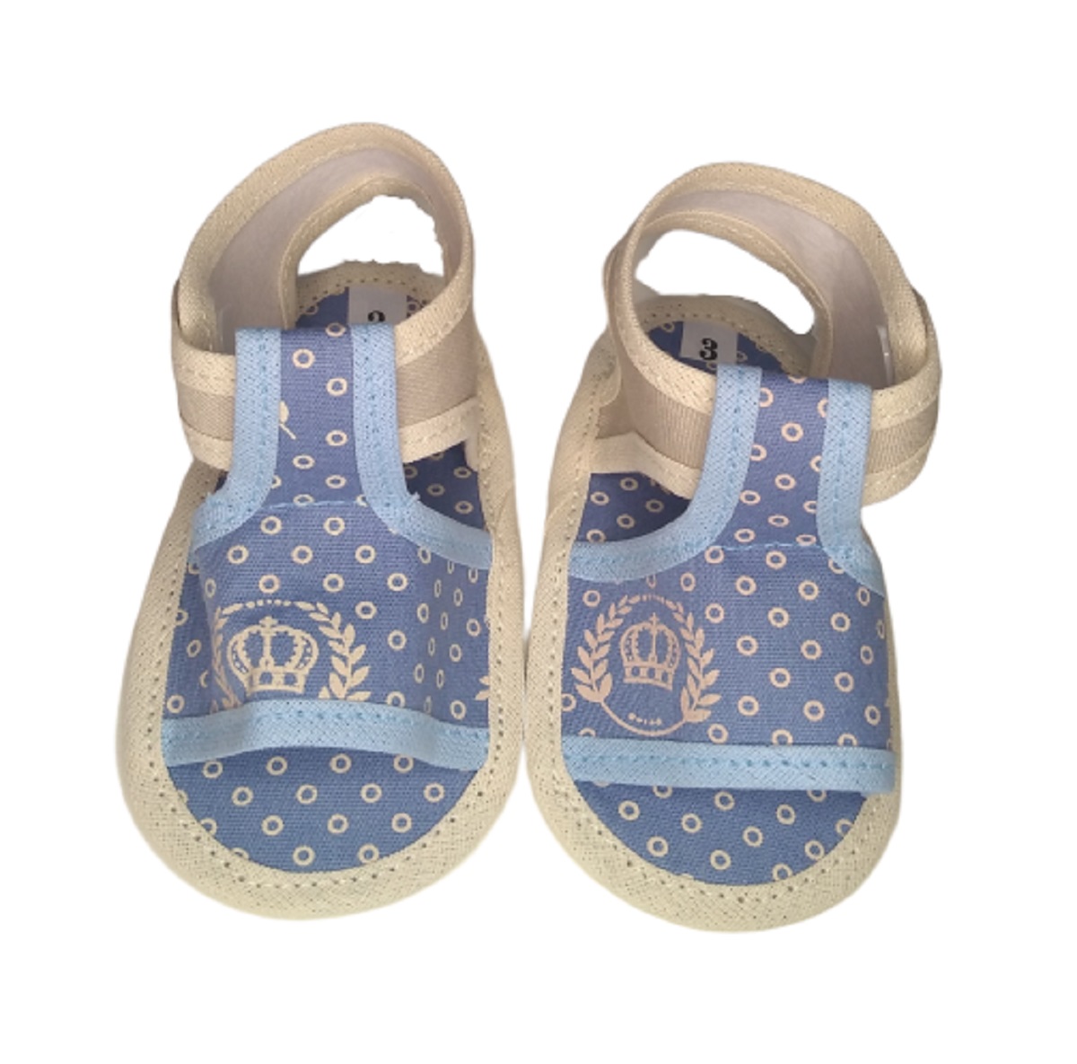 Lindas sandália de bebê masculina em tecido. Confortáveis e graciosas para o seu bebê.