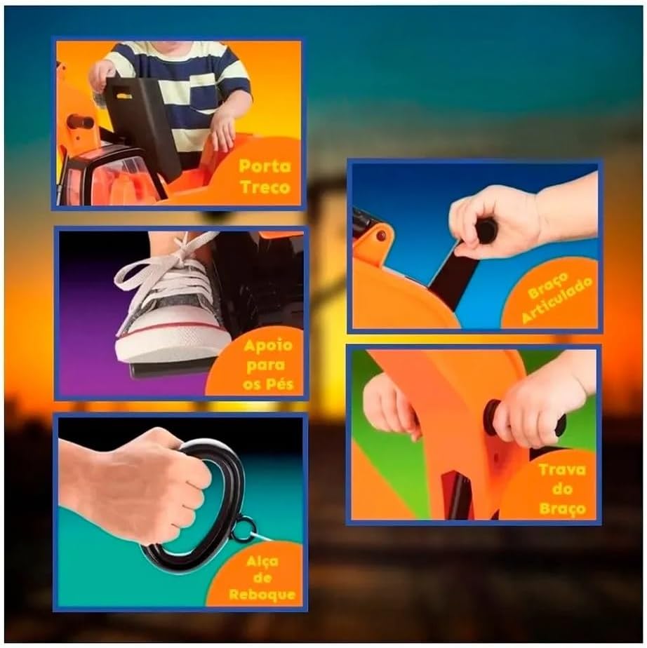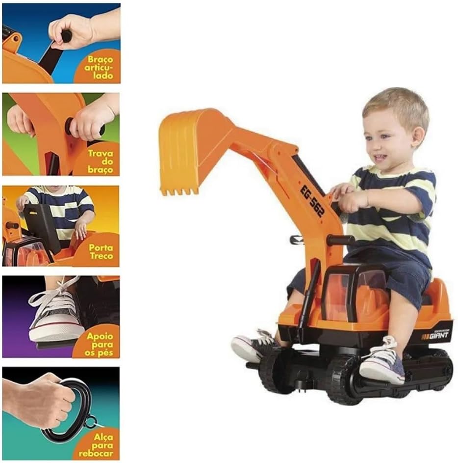 Trator Giant Escavator até 50kg, unidade. Marca: Roma. Característica do produto: carros e veículos, cenários e carrinhos. Número do produto: 57237.